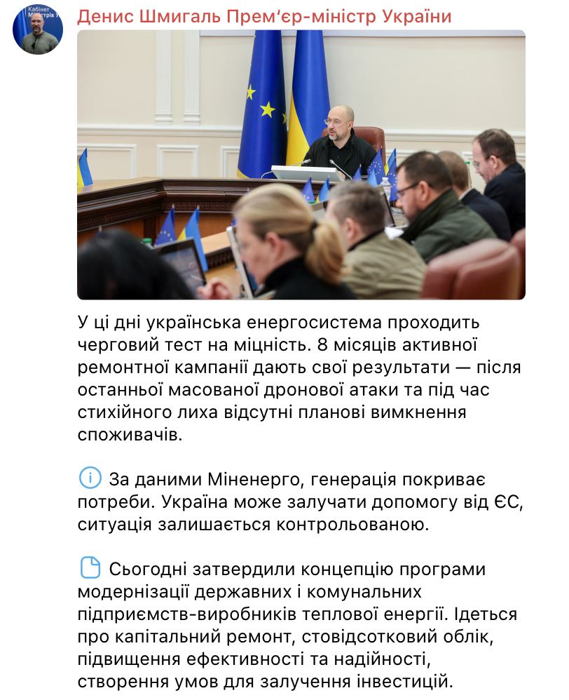 13.02 Премьер Шмыгаль подтвердил, что недавняя массовая атака дронов была нацелена на энергетику Украины.