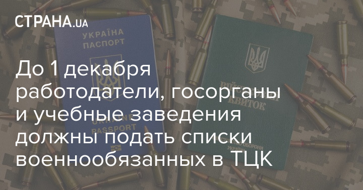 До 1 декабря украинские работодатели, органы местной власти и образовательные учреждения должны впервые подать в ТЦК списки призывников, военнообязанных и резервистов.