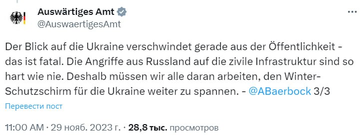 Глава МИД Германии Анналена Бербок сообщила, что Украина исчезает из поля зрения общественности.