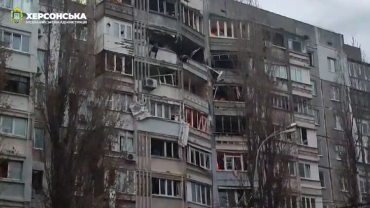 Последствия удара по многоэтажке в Херсоне. Скриншот видео