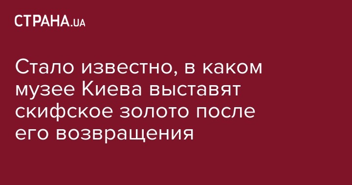 Стало известно, в каком музее Киева выставят скифское золото после его возвращения