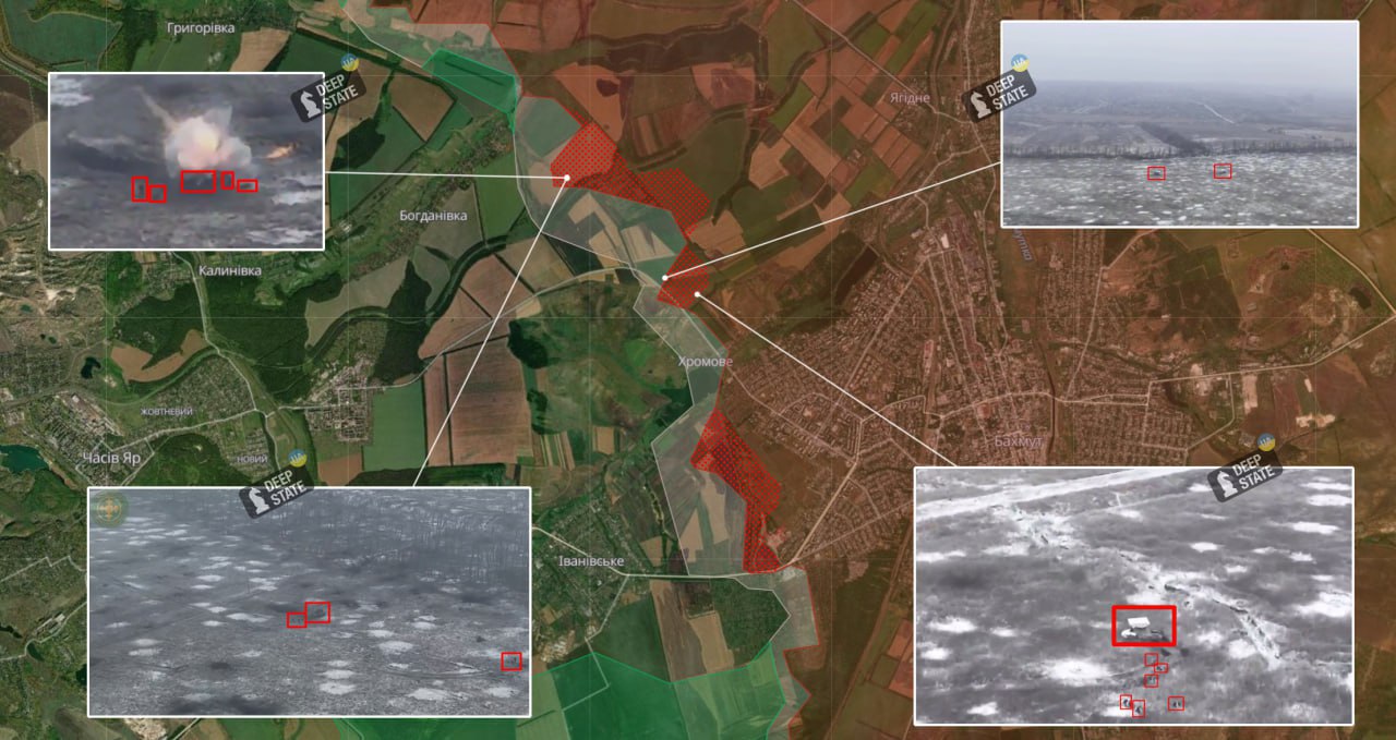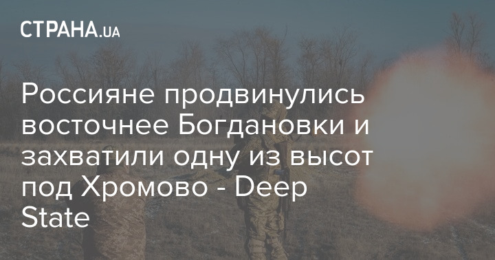 По данным телеграм-канала Deep State, россияне продвинулись восточнее Богдановки (источники противника пишут о "100 метрах от первых домов), а также захватили одну из высот под Хромово.