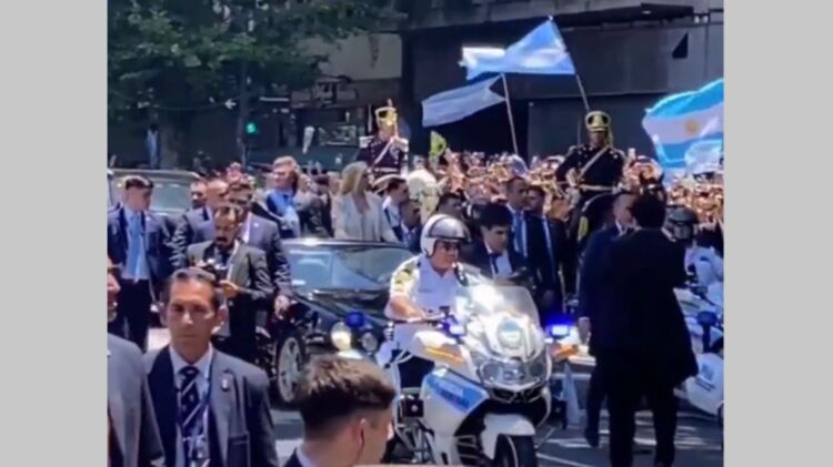 В сети появилось видео инцидента, который произошел на инаугурации президента Аргентины Хавьера Милея. В ехавшего в открытой машине нового главу государства мужчина бросил бутылку.