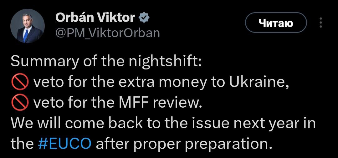 Венгрия ветировала выделение Евросоюзом 50 миллиардов евро Украине