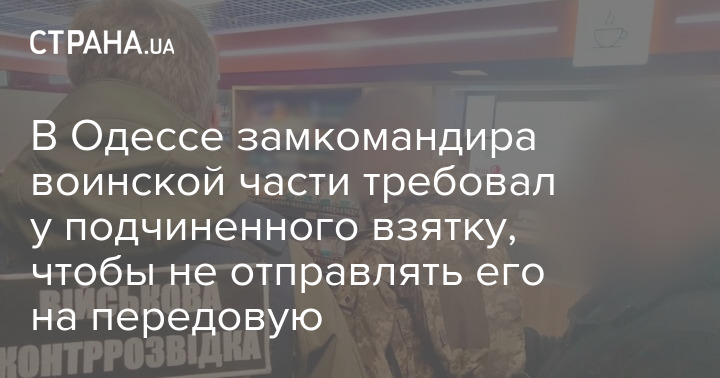В Одессе задержали заместителя командира воинской части, который требовал у подчиненного 15 тысяч гривен за неотправку на передовую.