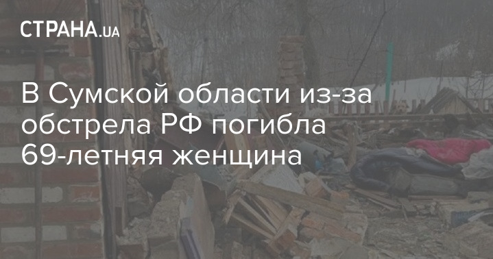 Сегодня в результате артобстрела Краснополья Сумской области в собственном доме погибла 69-летняя женщина.