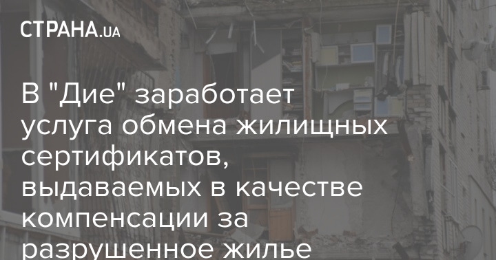 Уже на этой неделе в "Дие" заработает услуга обмена жилищных сертификатов, выдаваемых в качестве компенсации за разрушенное из-за обстрелов РФ жилье.