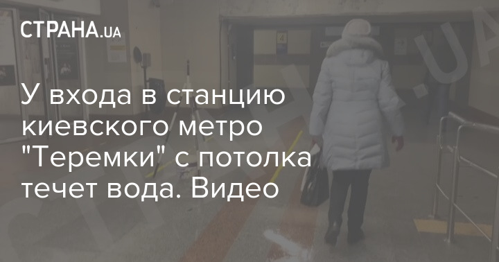 У входа на конечную станцию Оболонско-Теремковской линии Киевского метрополитена "Теремки" с потолка течет вода.