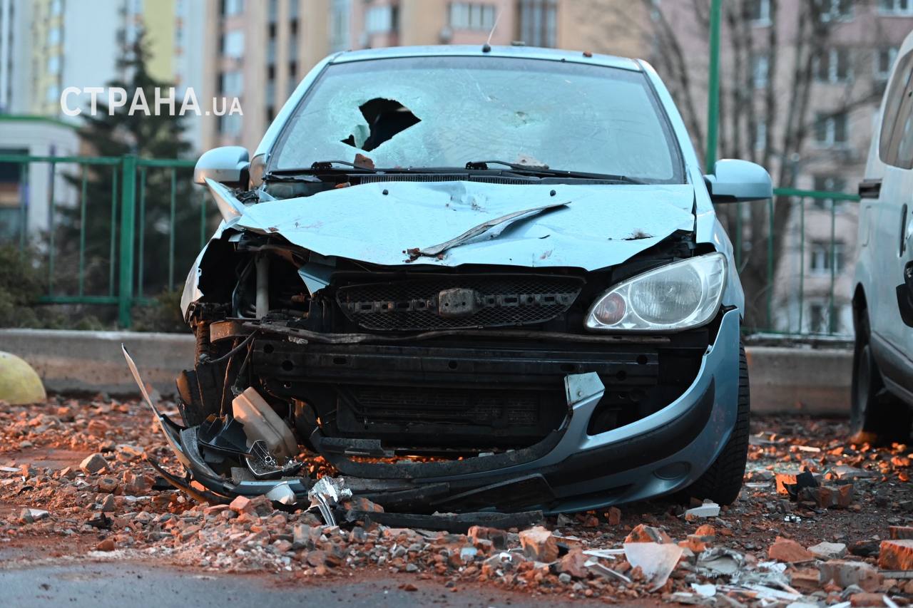 08.53 Возле дома на Соломенке в Киеве пострадало два автомобиля, на них упали обломки бетона от поврежденных стен.