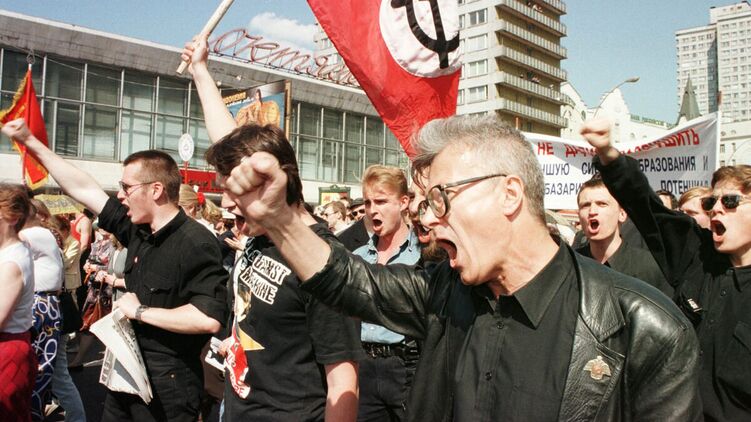 Вечером во вторник 26 декабря двое подростков в Одессе возле ТЦ "Афины" развернули флаг Национал-большевистской партии России покойного Эдуарда Лимонова.