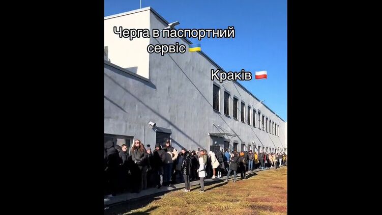 Очередь украинцев в паспортный сервис Кракова. Кадр из видео
