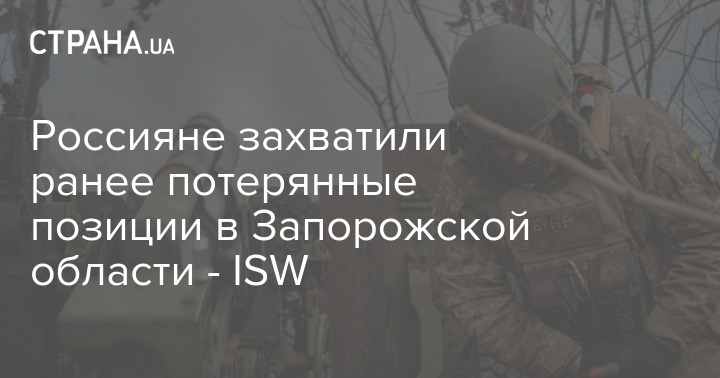 Американский Институт изучения войны (ISW) сообщает, что россияне захватили ранее потерянные позиции в Запорожской области.
