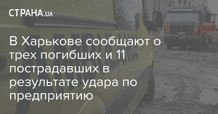 В Харькове сообщают о трех погибших и 11 пострадавших в результате удара по предприятию