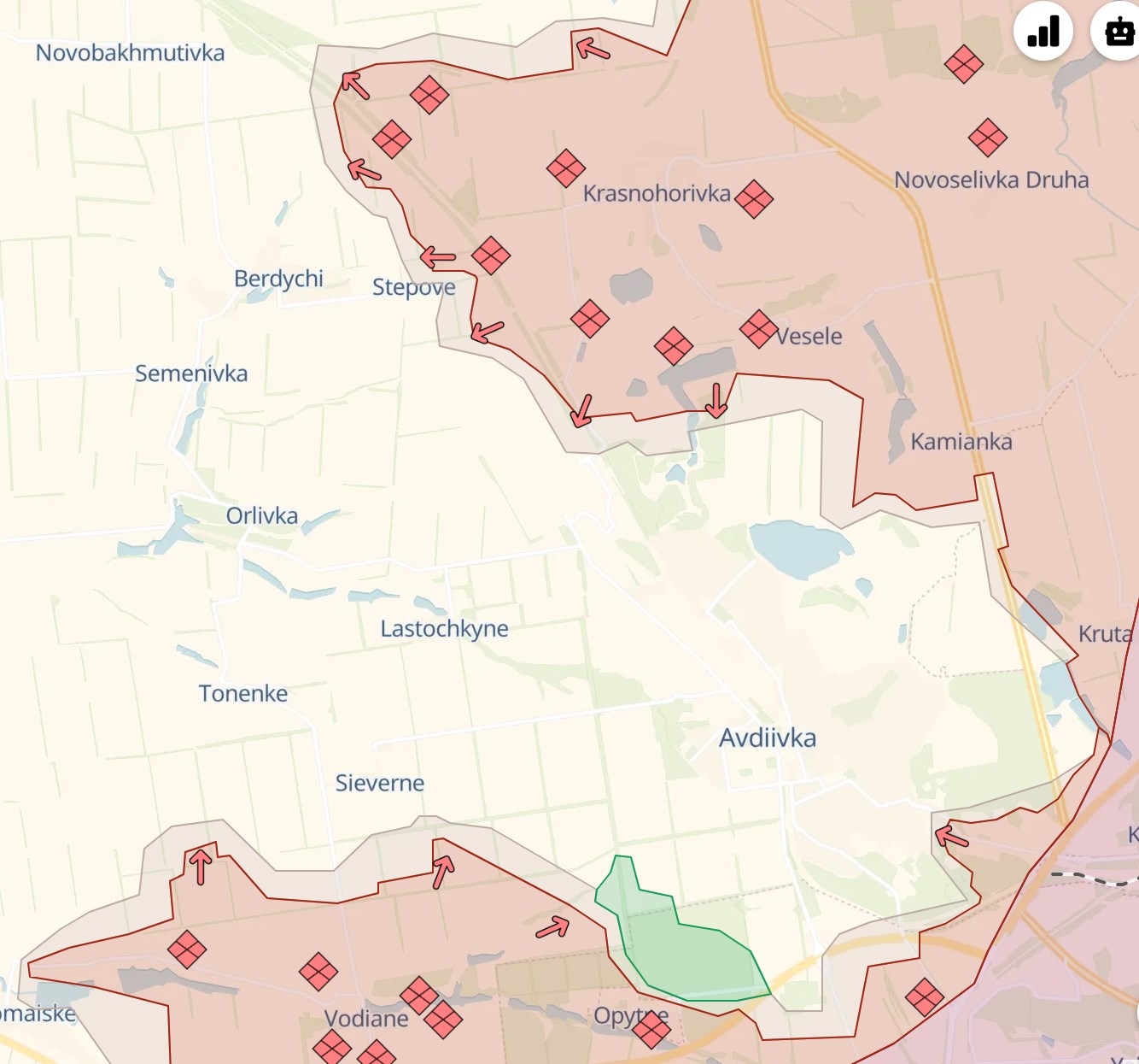 К югу от Авдеевки идут попытки россиян закрепиться в Первомайском, а к западу от Марьинки - войти в село Георгиевка.