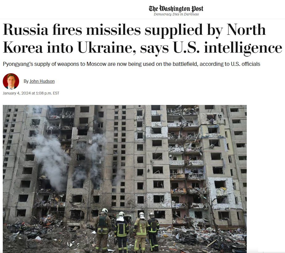 Газета The Washington Post также написала со ссылкой на двух американских чиновников, что Россия начала запускать по Украине баллистические ракеты, которые были предоставлены Северной Кореей.
