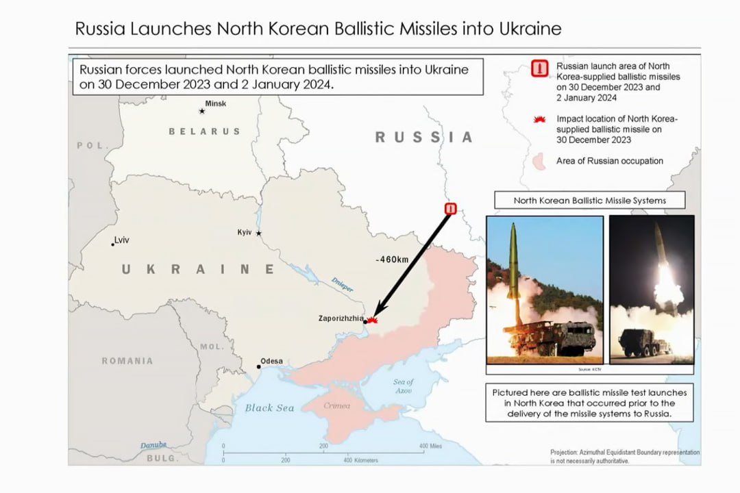 "Наша информация указывает на то, что Корейская Народно-Демократическая Республика недавно предоставила России пусковые установки баллистических ракет и несколько десятков баллистических ракет, а Россия запустила несколько баллистических ракет по Украине", — сказал один из чиновников. Второй чиновник сообщил, что северокорейские снаряды представляли собой баллистические ракеты малой дальности.