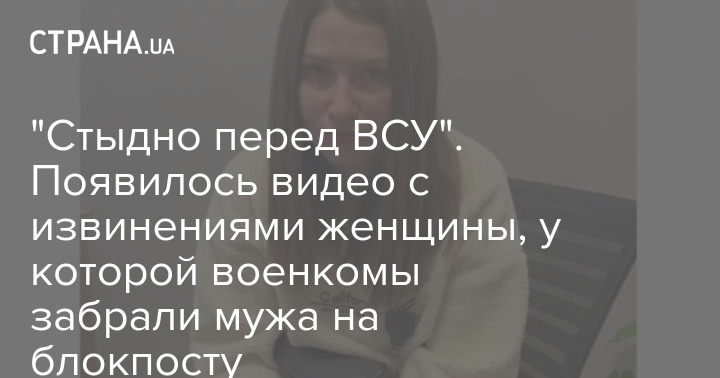 "Стыдно перед ВСУ". Появилось видео с извинениями женщины, у которой военкомы забрали мужа на блокпосту