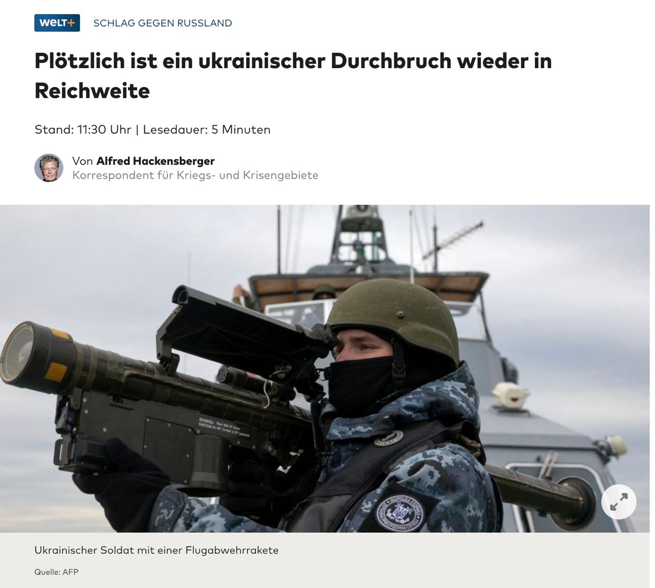Немецкое издание Welt предполагает, что Украина может начать новое наступление на юге весной.