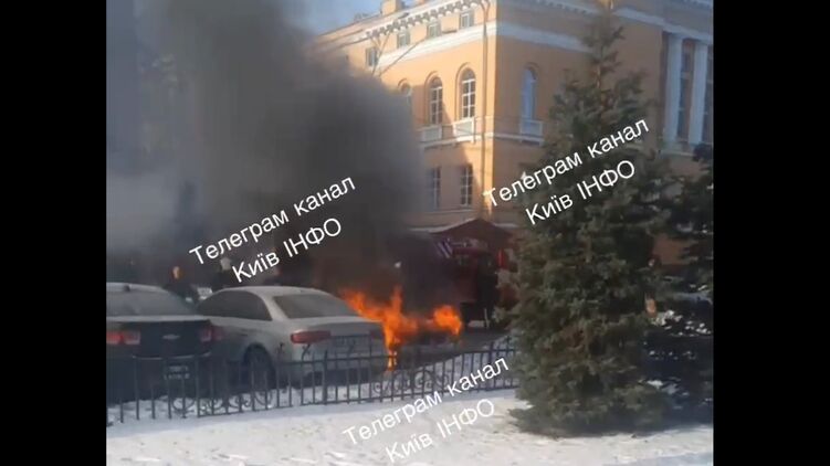 В пятницу, 12 января, в центре Киева у красного корпуса университета Шевченко загорелся автомобиль.