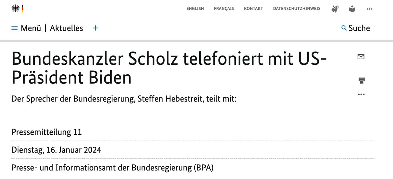 Об этом сообщает правительство ФРГ по итогам телефонного разговора канцлера ФРГ Олафа Шольца и президента США Джо Байдена.