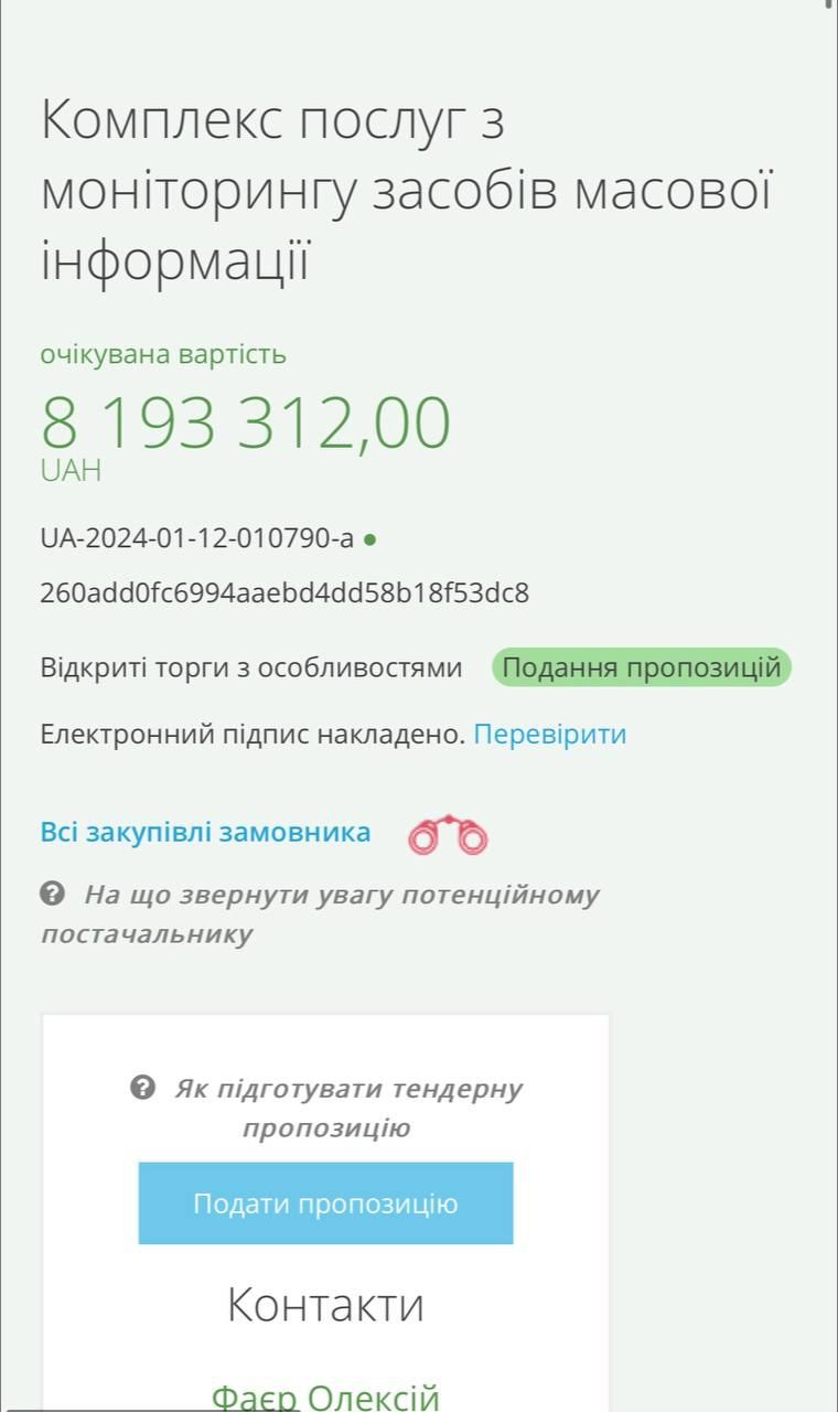 Госпредприятие заплатит почти 8 миллионов гривен за мониторинг того, что пишут о власти и военных