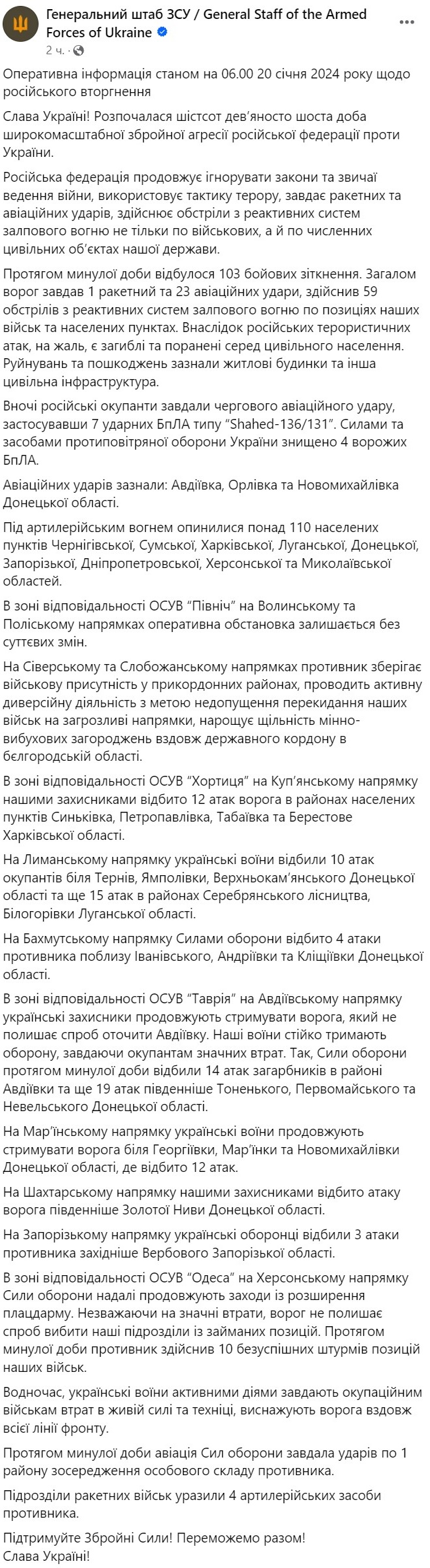 Война в Украине идет уже 696-й день. Мы следим за последними новостями и ключевыми событиями 20 января 2024 года в обновляемом онлайне