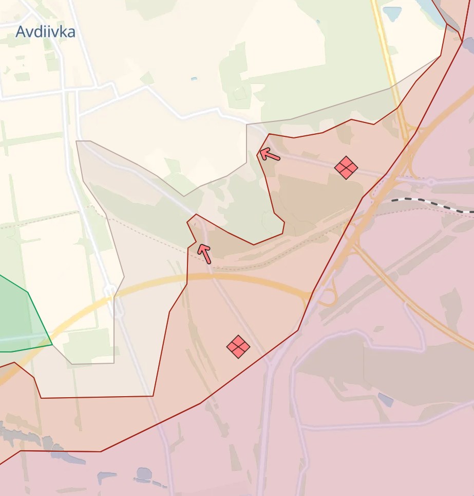 Сегодня же практически все паблики РФ пишут, что этот укрепрайон был взят. О чем сообщает также украинский телеграм-канал Deep State, который на своей карте зафиксировал продвижение РФ с юга в район "Царской охоты" и переход части территории, включая окраину Авдеевки, в "серую" зону.
