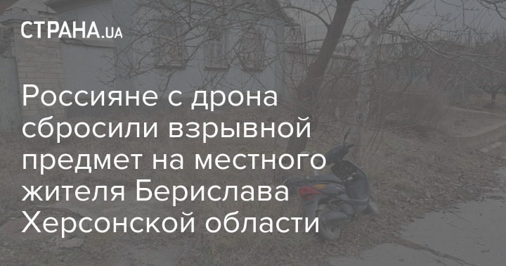 Сегодня днём россияне с дрона сбросили взрывчатку на местного жителя Берислава Херсонской области. Мужчина погиб.