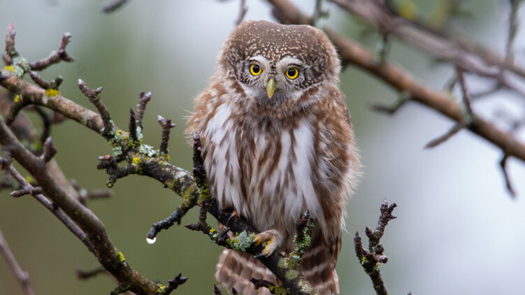 Воробьиный сыч – самая маленькая сова фауны Украины: длина ее тела составляет всего 15-17 см с перьями, а вес и вовсе крохотный – 50-77 граммов. Впрочем, это не мешает птице успешно охотиться на мелких грызунов и некрупных пернатых.