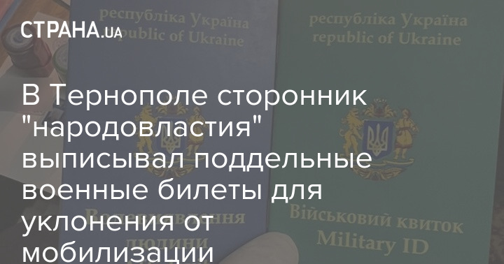 "Правоохранители задокументировали противоправную деятельность жителя Тернополя, называвшего себя сторонником так называемого "народовластия". Он создал фейковую компанию, изготовил для нее печать и остальную нужную документацию. Поддерживавшим организатора мужчинам призывного возраста выдавали фальшивые военные билеты. Подделки трудно было отличить от оригинала. Мероприятия по разоблачению фейкового органа местного самоуправления провели полицейские совместно с оперативниками СБУ под процессуальным руководством Тернопольской окружной прокуратуры.