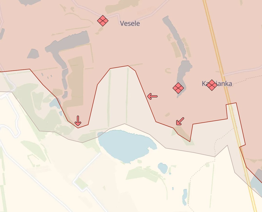 Украинский паблик Deep State сообщил, что РФ продвинулась на расстояние около километра со стороны деревни Веселое.