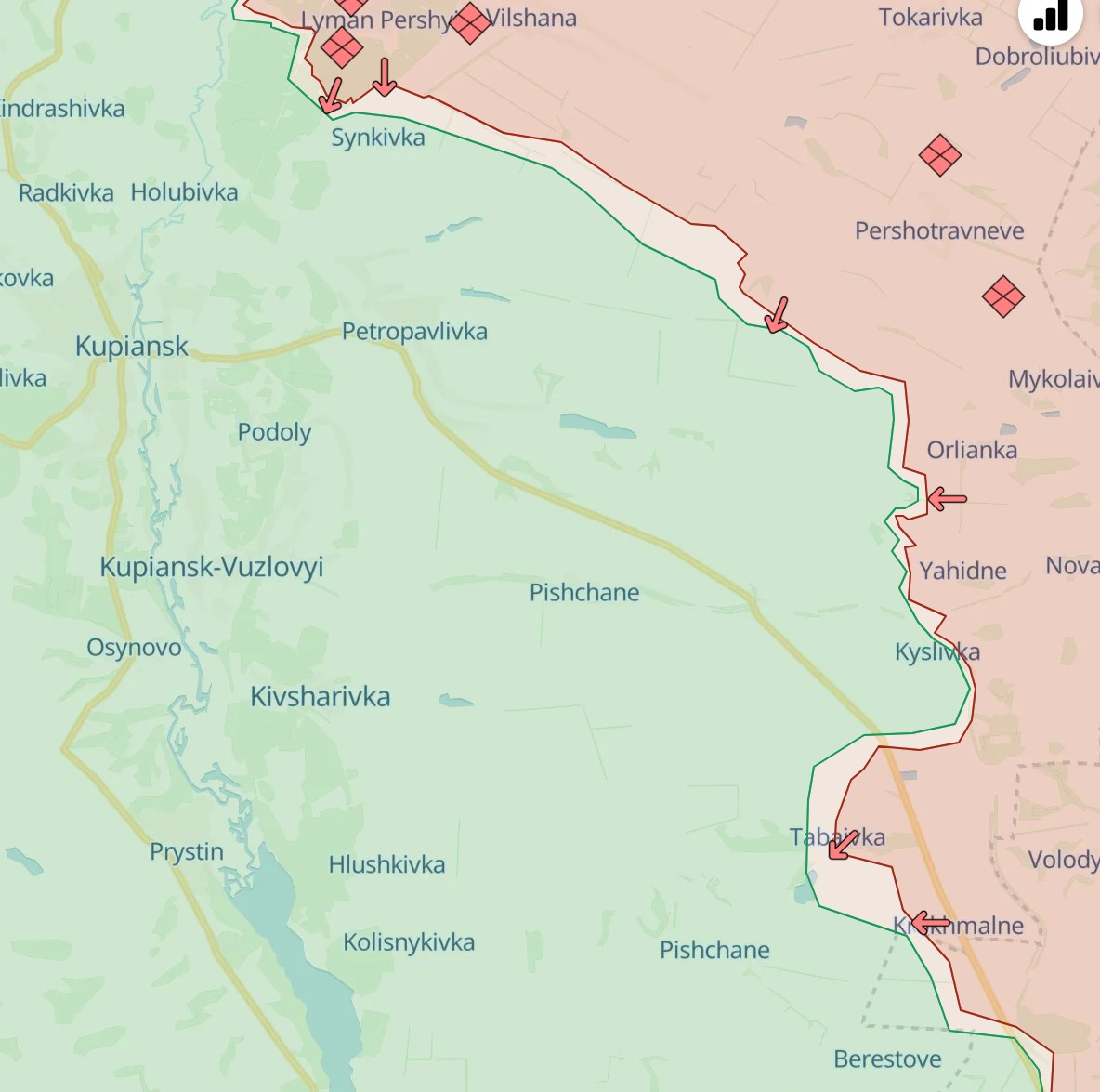 По данным украинского военного паблика Deep State, на этом направлении продолжаются тяжелые бои за Табаевку и восточнее Тернов, где россияне "несколько продвинулись".