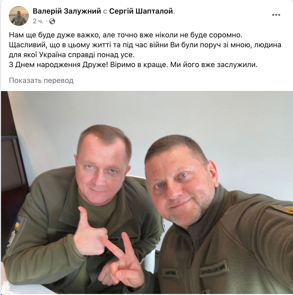 Залужный поздравил главу Генштаба Сергея Шапталу с днем рождения.