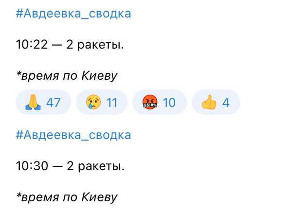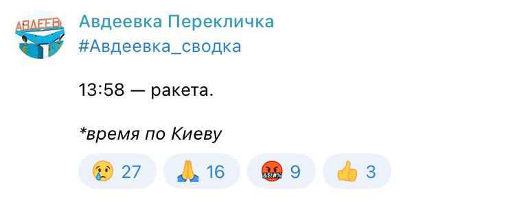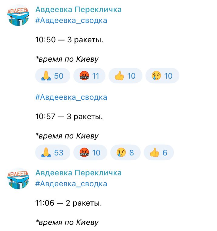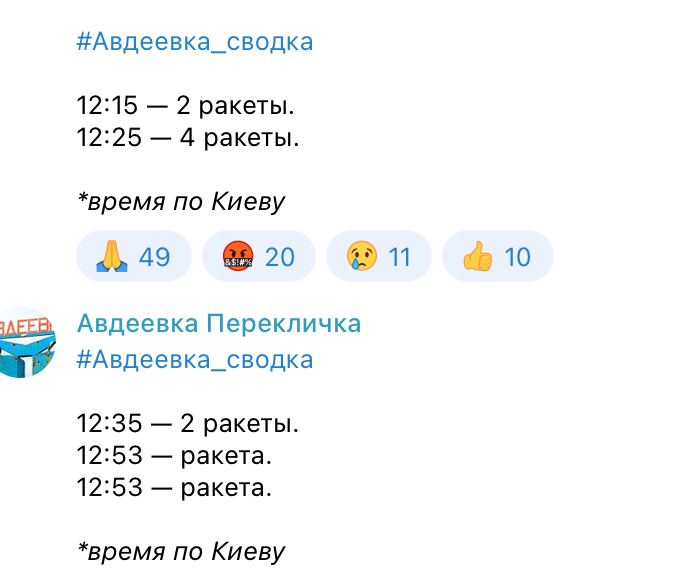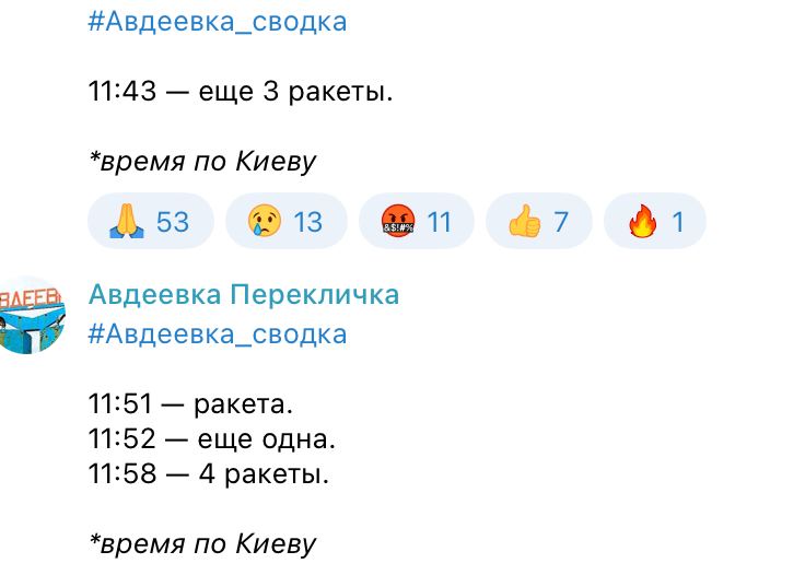 16:41 Ситуации в Авдеевке - скрины сообщений из местного паблика о прилётах ракет.