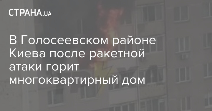 В Голосеевском районе Киева после ракетной атаки горит многоквартирный дом