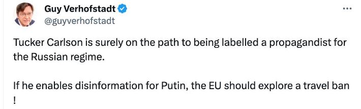 В ЕС отрицают планы ввести санкции в отношении американского журналиста Такера Карлсона за интервью с президентом России Владимиром Путиным.