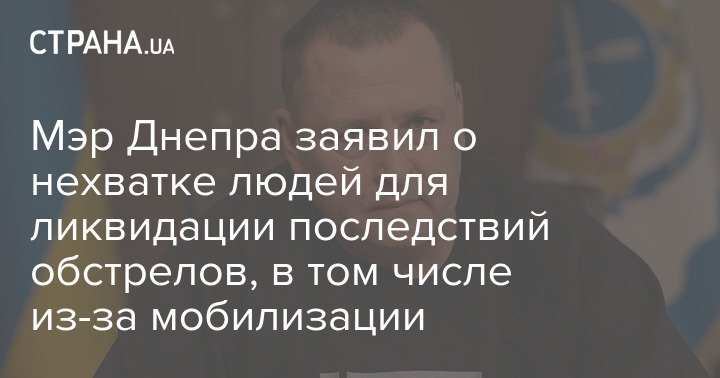 Мэр Днепра заявил о нехватке людей для ликвидации последствий обстрелов, в том числе из-за мобилизации