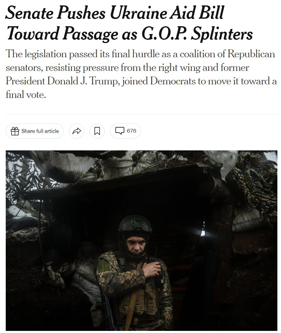 Накануне голосования за помощь Украине в Сенате, "республиканцы резко раскололись". Об этом пишет New York Times.