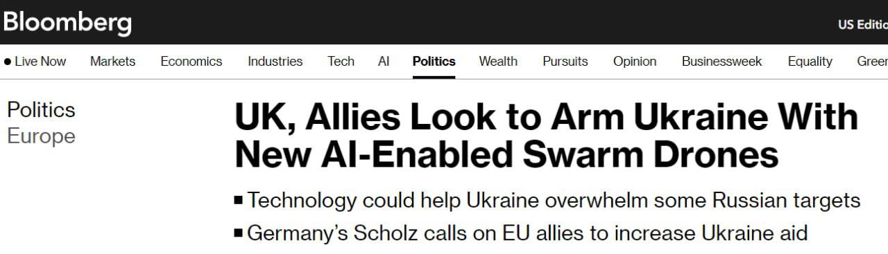 Великобритания вместе с США и другими союзники работает над предоставлением Украине тысячи новых беспилотников с искусственным интеллектом, которые могли бы атаковать российские цели целыми "роями".
