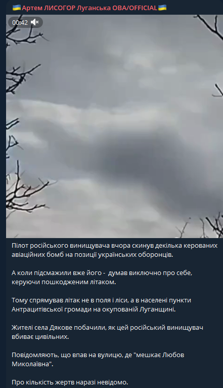 Российский пилот направил падающий истребитель на населенные пункты оккупированной Луганской области