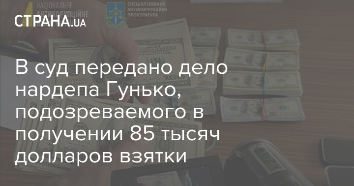 В суд передано дело народного депутата от "Слуги народа" Анатолия Гунько, подозреваемого в получении взятки в размере 85 тысяч долларов.