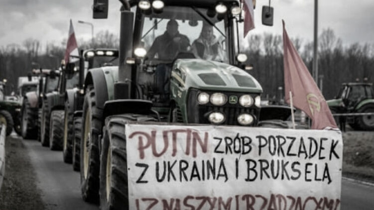 Напомним, во время масштабных протестов польских аграриев против ввоза украинского зерна один из фермеров прикрепил на свой трактор послание, адресованное лично президенту РФ: "Путин, разберись с Украиной, Брюсселем и нашими правителями". Флаг СССР был закреплён на левой стороне радиатора сельхозмашины.