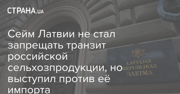 Сейм Латвии сегодня принял законопроект, запрещающий импорт сельскохозяйственных продуктов из России и Беларуси для внутреннего рынка. При этом депутаты не поддержали поправку, запрещающую транзит таких товаров.