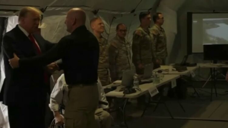 Губернатор Техаса Грег Эбботт в сопровождении Национальной гвардии с почестями встретил Трампа.