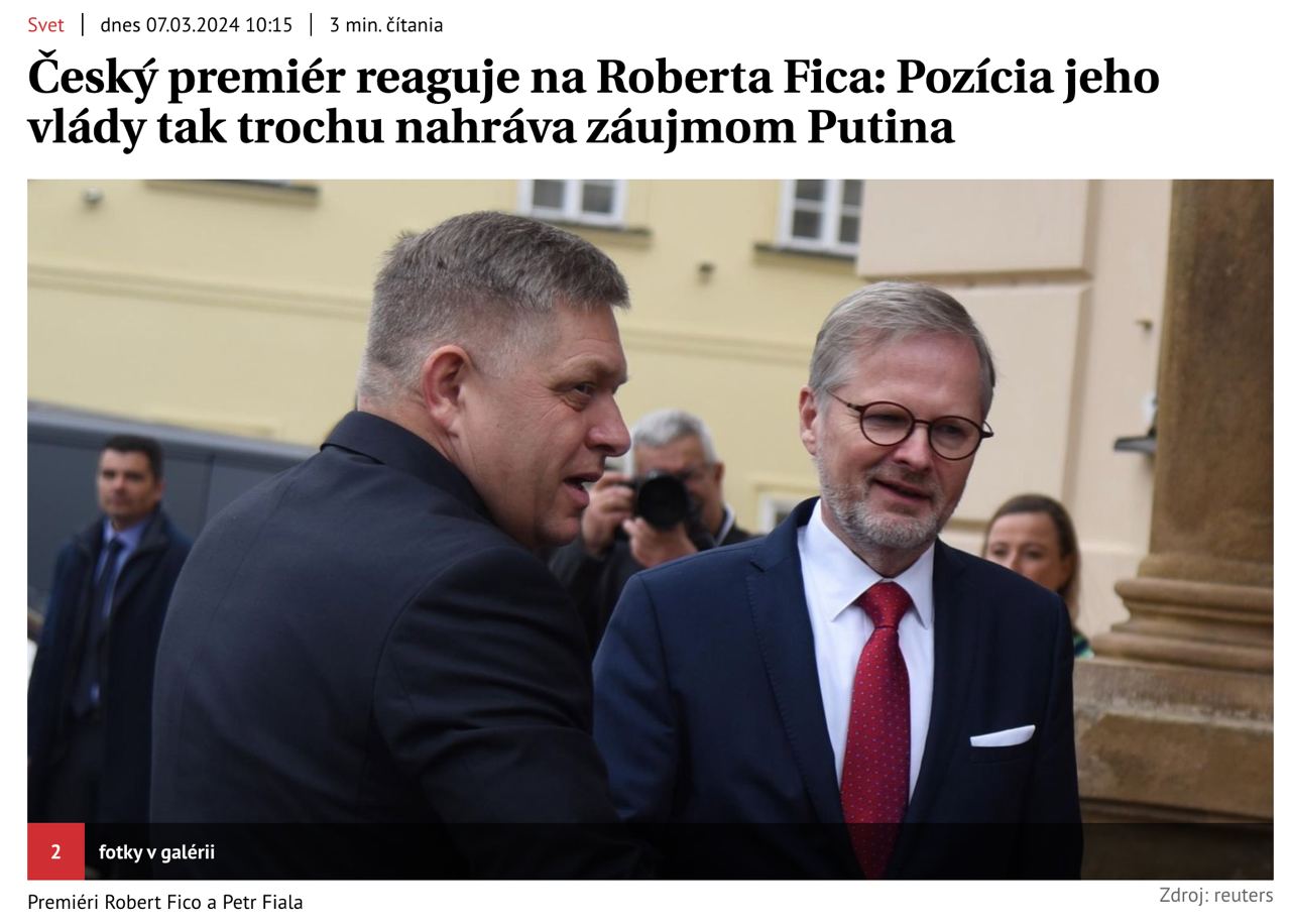 Чехия приостановила межправительственные консультации со Словакией, потому что позиция правительства премьер-министра Роберта Фицо "апеллирует к интересам Путина".