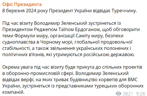 Напомним, накануне служба новостей BBC со ссылкой на офис президента Турции писала, что 8 марта президент Украины Владимир Зеленский посетит Турцию и встретится с президентом этой страны Реджепом Тайипом Эрдоганом.