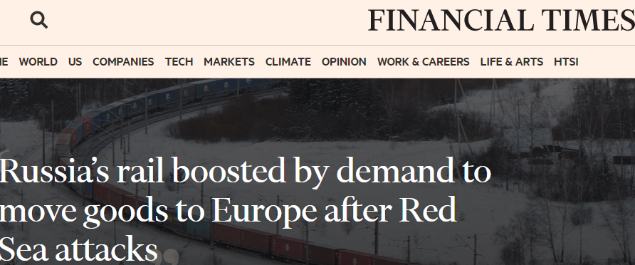 "Логистические компании по-новому посмотрели на маршруты через Россию после решения большинства крупных контейнерных судоходных линий перенаправить обычно проходящие через Суэцкий канал рейсы из Азии в Европу через мыс Доброй Надежды. Это решение было принято после того, как йеменские хуситы начали кампанию нападений на коммерческие суда", – пишет FT.