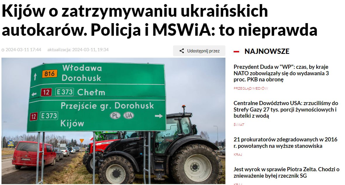 "Эта информация не соответствует действительности, ничего подобного не происходит. Мы как полиция абсолютно не контролируем ни гуманитарной, военной и медицинской помощи, ни пассажирских автобусов. Они проезжают беспрепятственно", – заявила пресс-секретарь полиции Катаржина Новак.