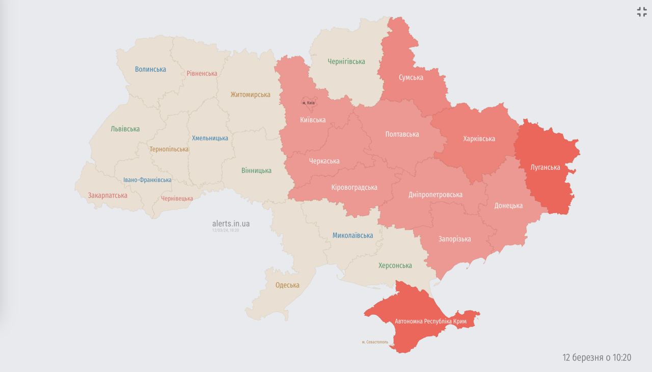10.38 Угроза баллистики в областях, где объявлена тревога, сообщают Воздушные силы.