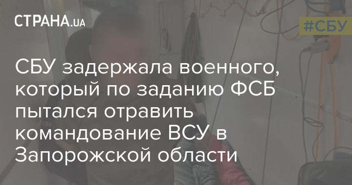 Служба безопасности Украины сообщила, что задержала военного, который по заданию ФСБ пытался отравить командование ВСУ по запорожскому направлению.